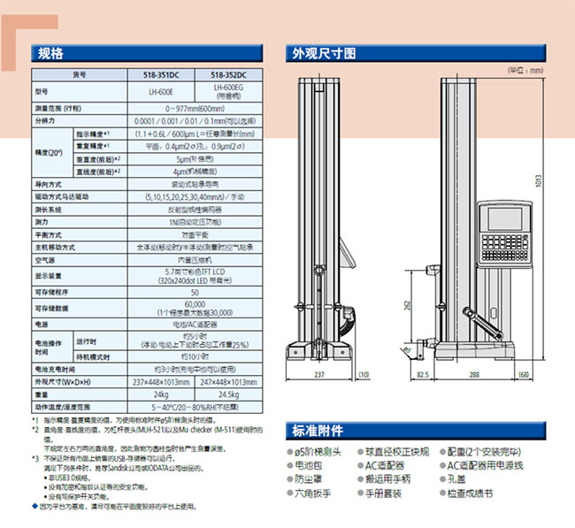 *分辨率为0.1/0.5μm时,精度可高达(1.3+0.6L/600)μm;