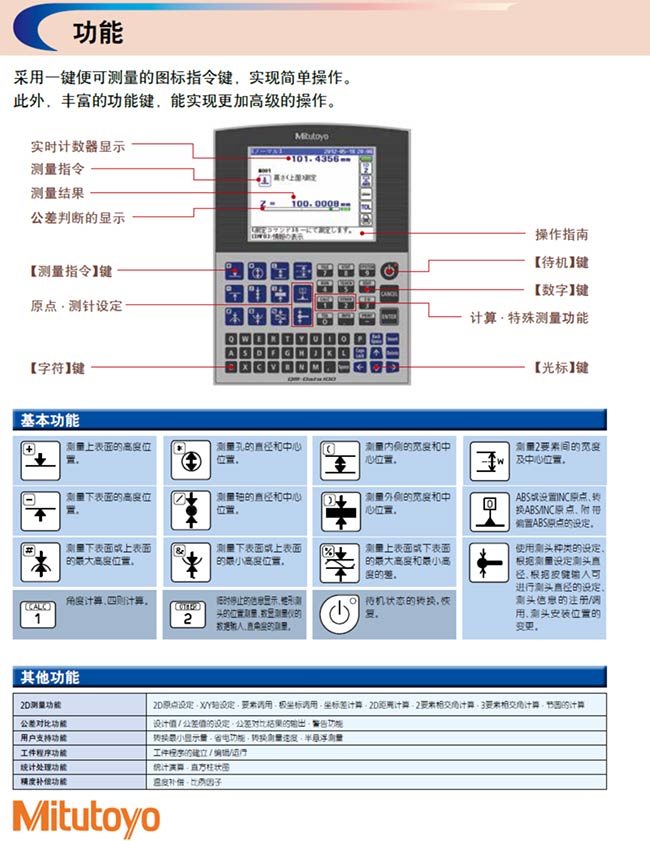 *带有基本统计功能,另外,通过RS-232C数据输出与带有SPC软件的电脑相连,可实现外部测量数据评估;