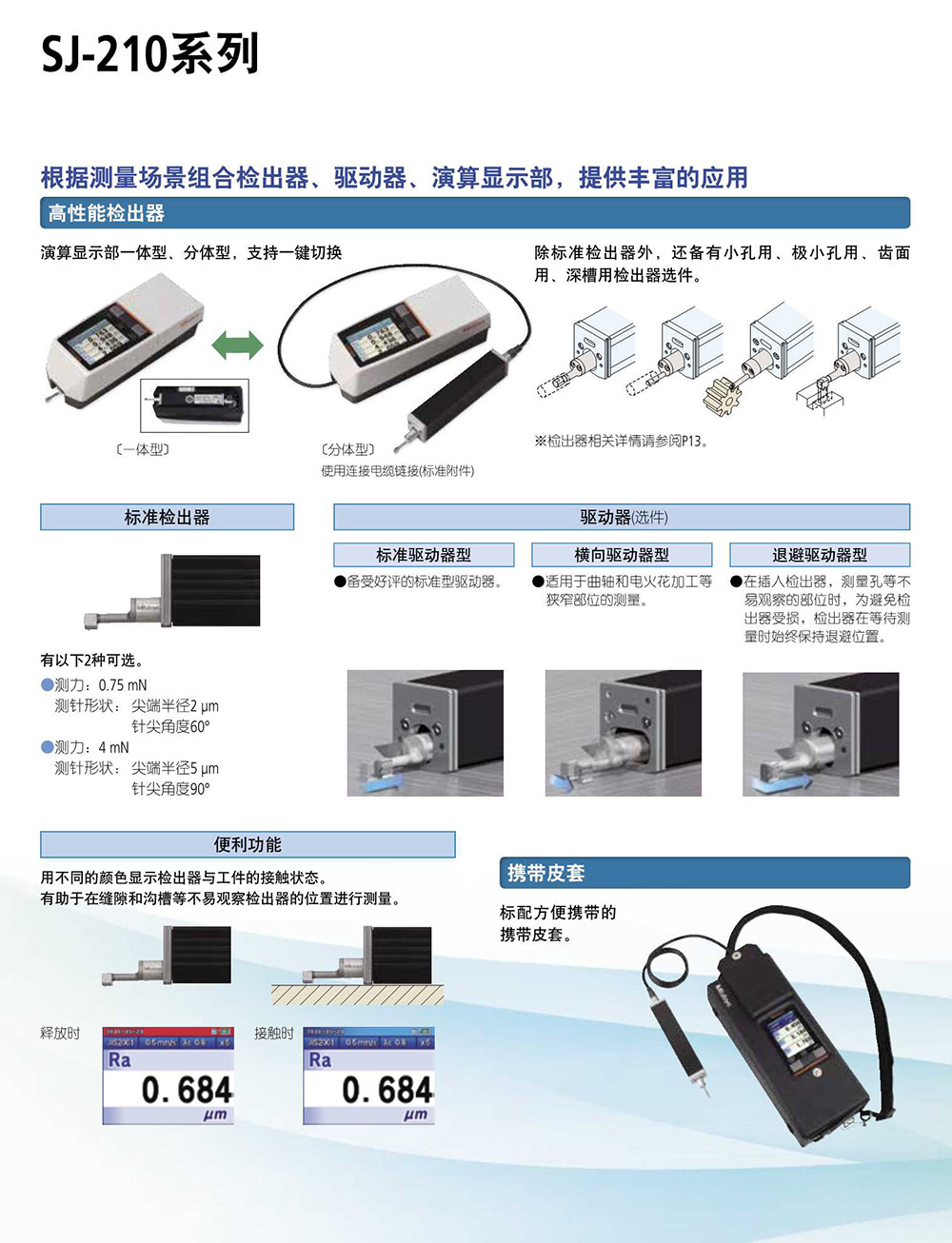 · 检测器/驱动部可拆卸,可在很小的空间内进行测量