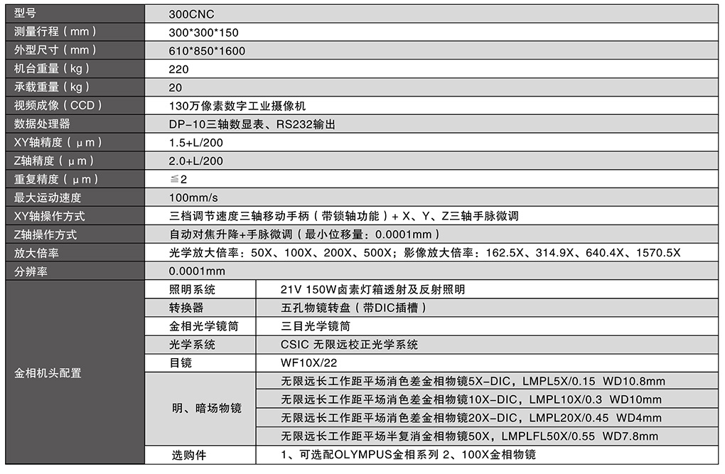 uMM-300/400/工具金像显微镜Z轴的配备自动对焦系统,大幅度降低人员操作复杂性,让人机工学做得高质,是目前的工具金像显微镜u新型的MM-300 ,MM-400工具金像显微镜配备SOPTOP公司最新的MX无限远色差校正光学镜头,可进行明场/暗场/偏光/DIC观察. 或配备NIKON公司的CFI60无穷远 高解析力光学镜头在高倍的观察下,可使工件的解析度增加,标准高倍率之工作距离也可至 1mm 。可选择使用不同功能之旋转鼻轮,五孔鼻轮可用于明视野观察,明暗视野观察或明暗视野加DIC 可供客户需要选择.u?灯源采用了目前是先进的LED做照明光源,大限度降低因以往采用卤素灯泡发热而造成的热胀误差.